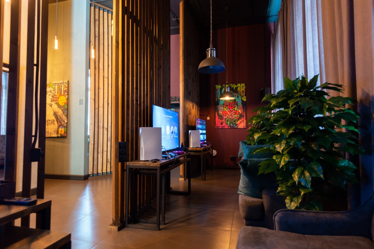 Все здорово! Мне все понравилось, в том числе кальяны, рабочие приставки, наличие бара, кнопки вызова и проектора, чистота и хорошая работа персонала. Я также остался доволен сэндвичами, которые заказывал.